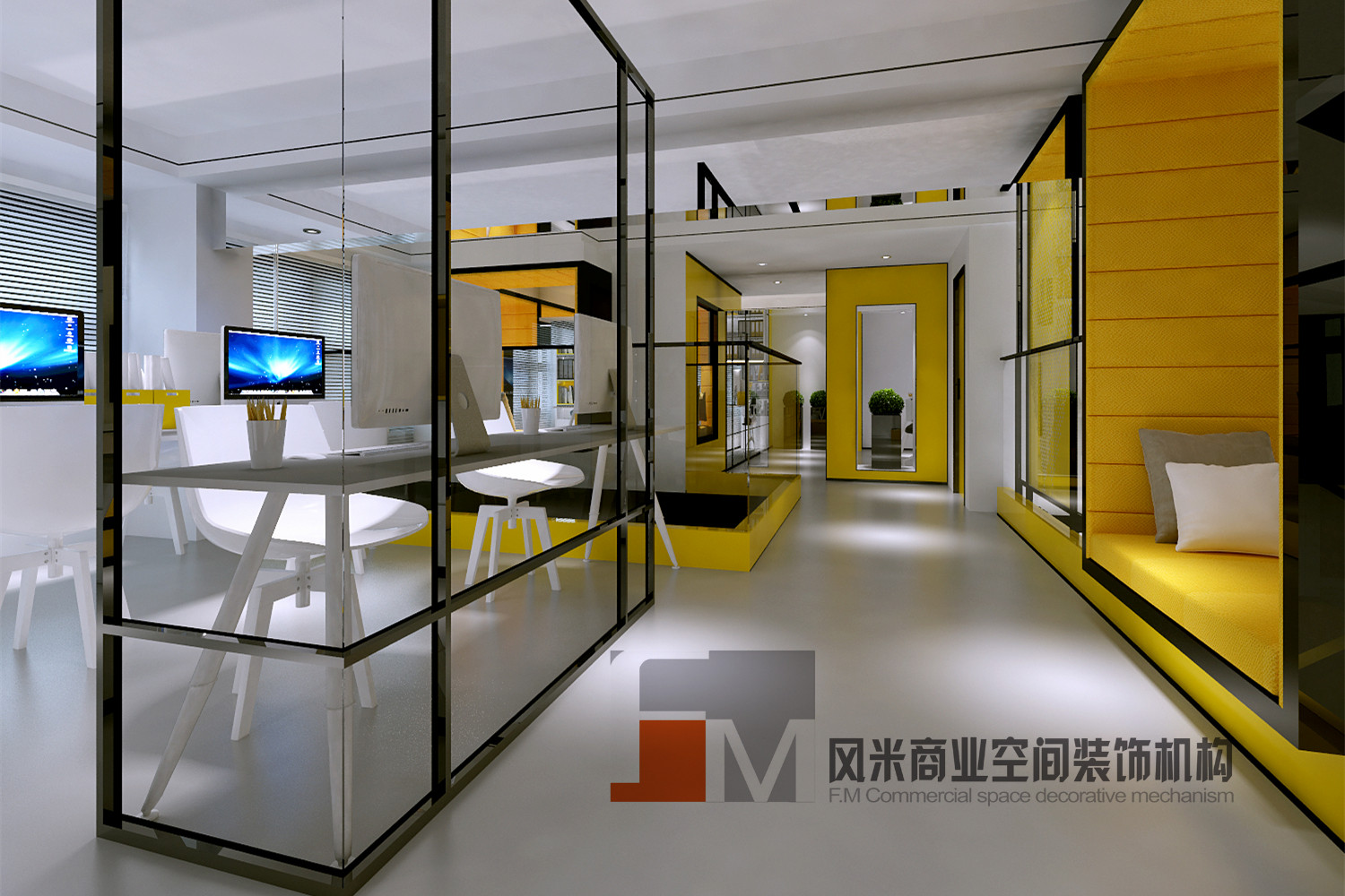 萬(wàn)科大廈欣悅化妝品公司,白與黃的搭配,簡(jiǎn)約、大氣!