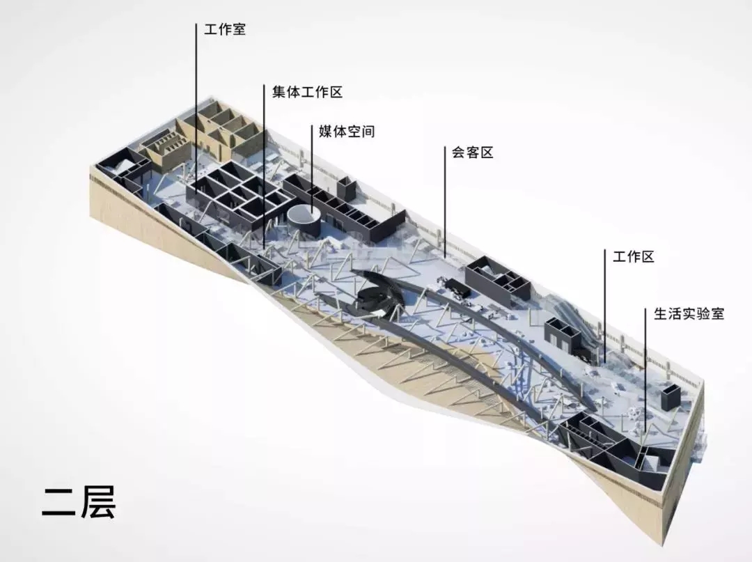 南安迪認(rèn)為,因為建筑結(jié)構(gòu)打破了常規(guī)的支撐模式,這三層之間并無阻隔,空間流暢,而其中的人和活動也是流動的。