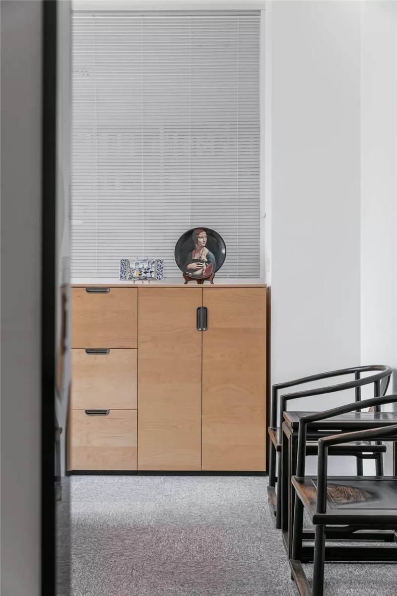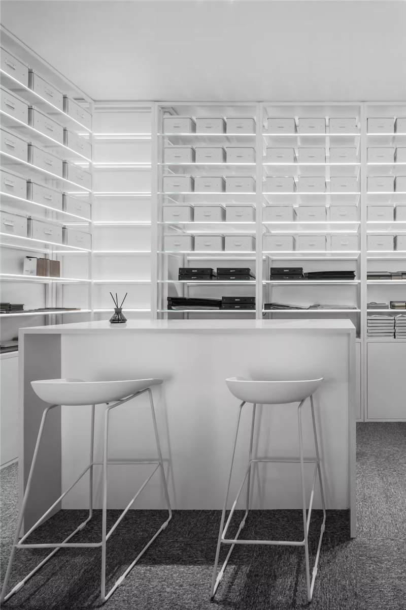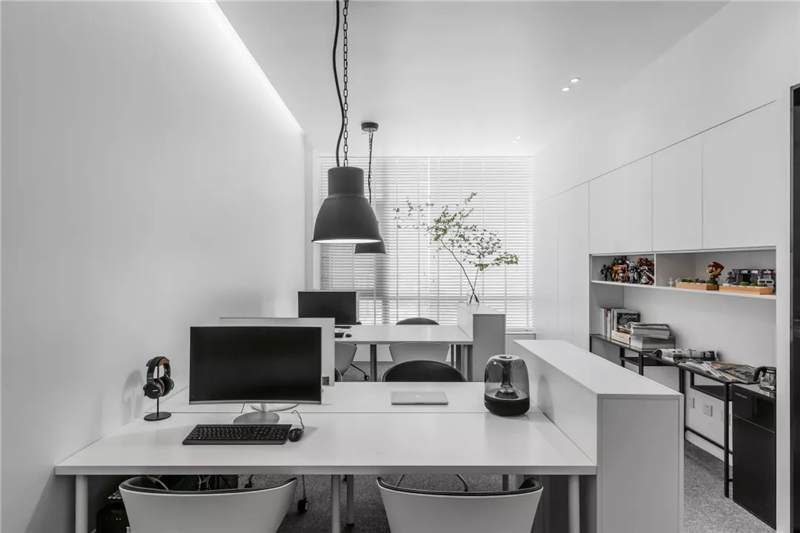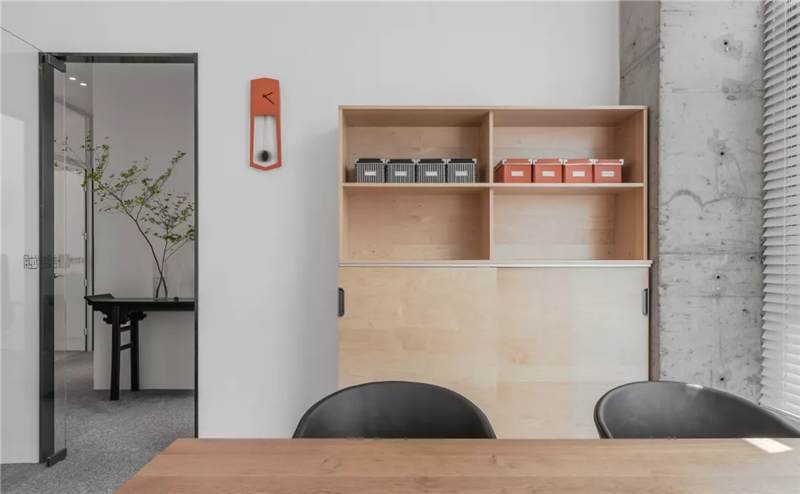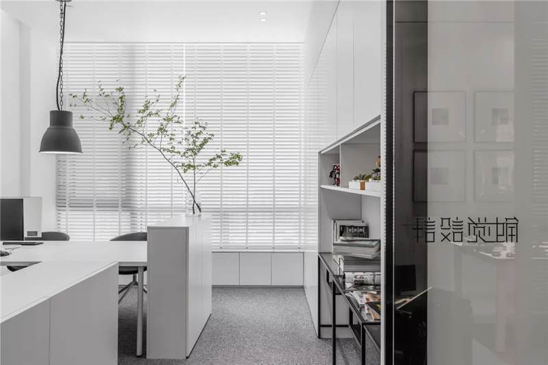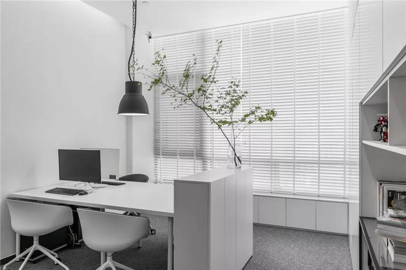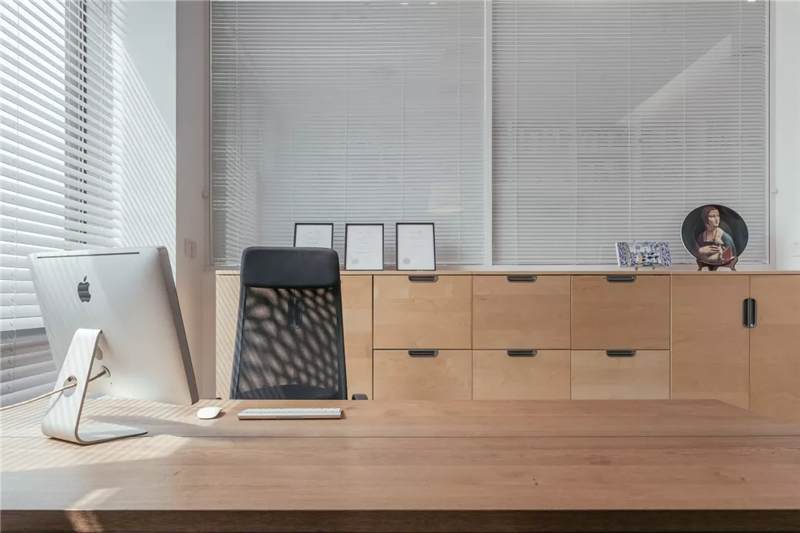 自由無(wú)拘的溝通對(duì)于團(tuán)隊(duì)的創(chuàng)新至關(guān)重要。開(kāi)放的辦公區(qū)是有效獲取信息和激發(fā)靈感的地方。百葉窗折射的光影,充足的自然光營(yíng)造高效的工作環(huán)境。空間雖然有限,但發(fā)揮最大的性能,開(kāi)辟出一整面的軟裝材料搭配區(qū)。