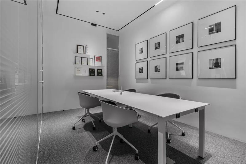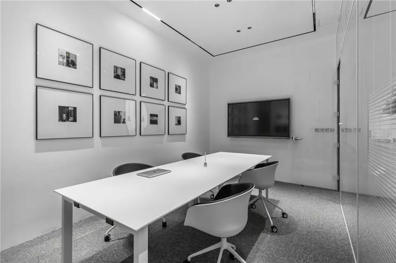 為了同時(shí)保證隱私和透明,張馳有道。會(huì)議室采用了玻璃+百葉窗的設(shè)計(jì),這樣的交流區(qū)域保持彼此的通透與聯(lián)接,提升了場(chǎng)所的張力。使用貼合設(shè)計(jì)的局部掛畫(huà)藝術(shù),配以金屬的深邃感官,多媒體影視裝置加強(qiáng)了墻面空間的信息輻射作用。
