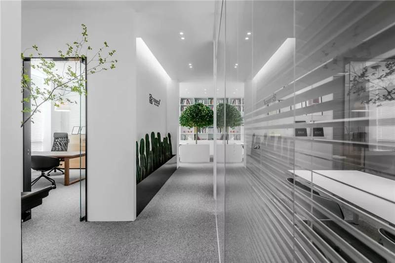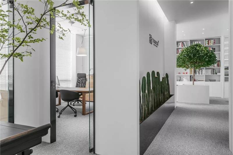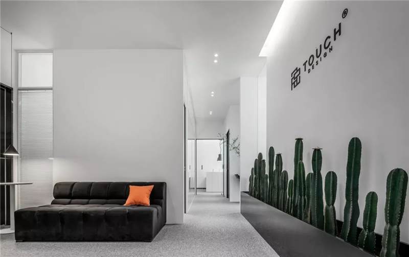刪繁就簡(jiǎn),以最經(jīng)典的白色為主題搭配色調(diào),沒(méi)有繁瑣的設(shè)計(jì)和過(guò)多的裝飾,減去辦公中的壓抑感。通過(guò)將自然純凈的白色與沉靜黑色相結(jié)合,將品牌形象簡(jiǎn)潔地呈現(xiàn)表達(dá),同時(shí)為左右空間的過(guò)渡創(chuàng)建和諧觀感。純白的墻面,接近心靈的澄凈;仙人掌是視覺(jué)的焦點(diǎn),恣意生長(zhǎng)、堅(jiān)韌、夯實(shí)根基,也正寓意著公司的設(shè)計(jì)理念:有所依、有所仗、有所長(zhǎng)。