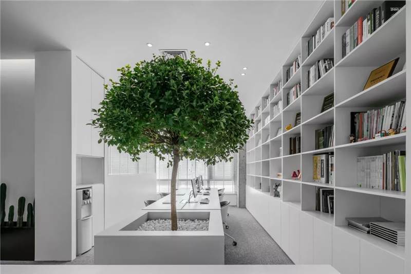 觸覺(jué)設(shè)計(jì)巧妙擷取文化于當(dāng)代都會(huì)空間,展現(xiàn)出雅致韻味的同時(shí)留下了更多觸碰的余地。綠植來(lái)點(diǎn)亮辦公場(chǎng)所的鮮活生命力,清逸的色彩是思想游龍的軌跡,在留白的空間中伸出觸角,觸覺(jué)所及之處,思維綻放遐想。