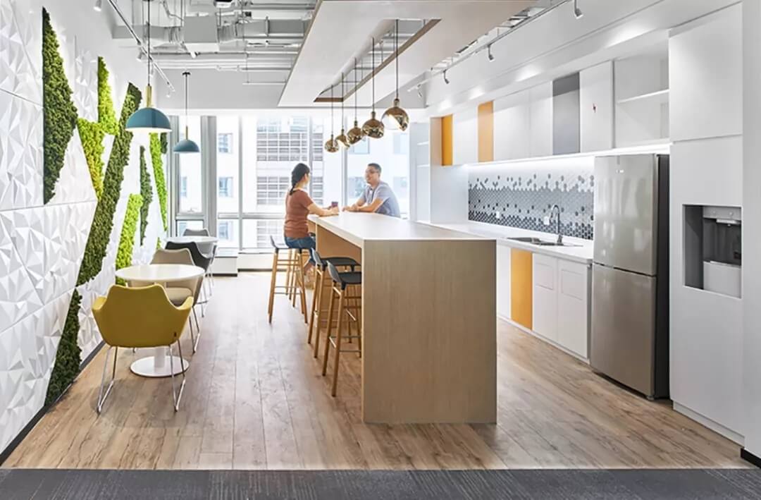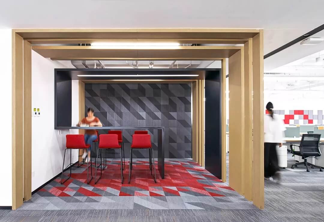 辦公空間設(shè)計無論如何發(fā)展,追求高效率始終是不變的目標。艾迪爾倡導(dǎo)的靈活辦公,是想通過辦公環(huán)境設(shè)計鼓勵員工多互動,更有量有質(zhì)的交流,因此在設(shè)定一系列休閑洽談區(qū)以外,茶水區(qū)這一休憩,互動,輕松交流的高頻區(qū)也是設(shè)計重點,是體現(xiàn)企業(yè)風格和人文關(guān)懷的重點打造區(qū),滿足員工不同的選擇和空間體驗感。
