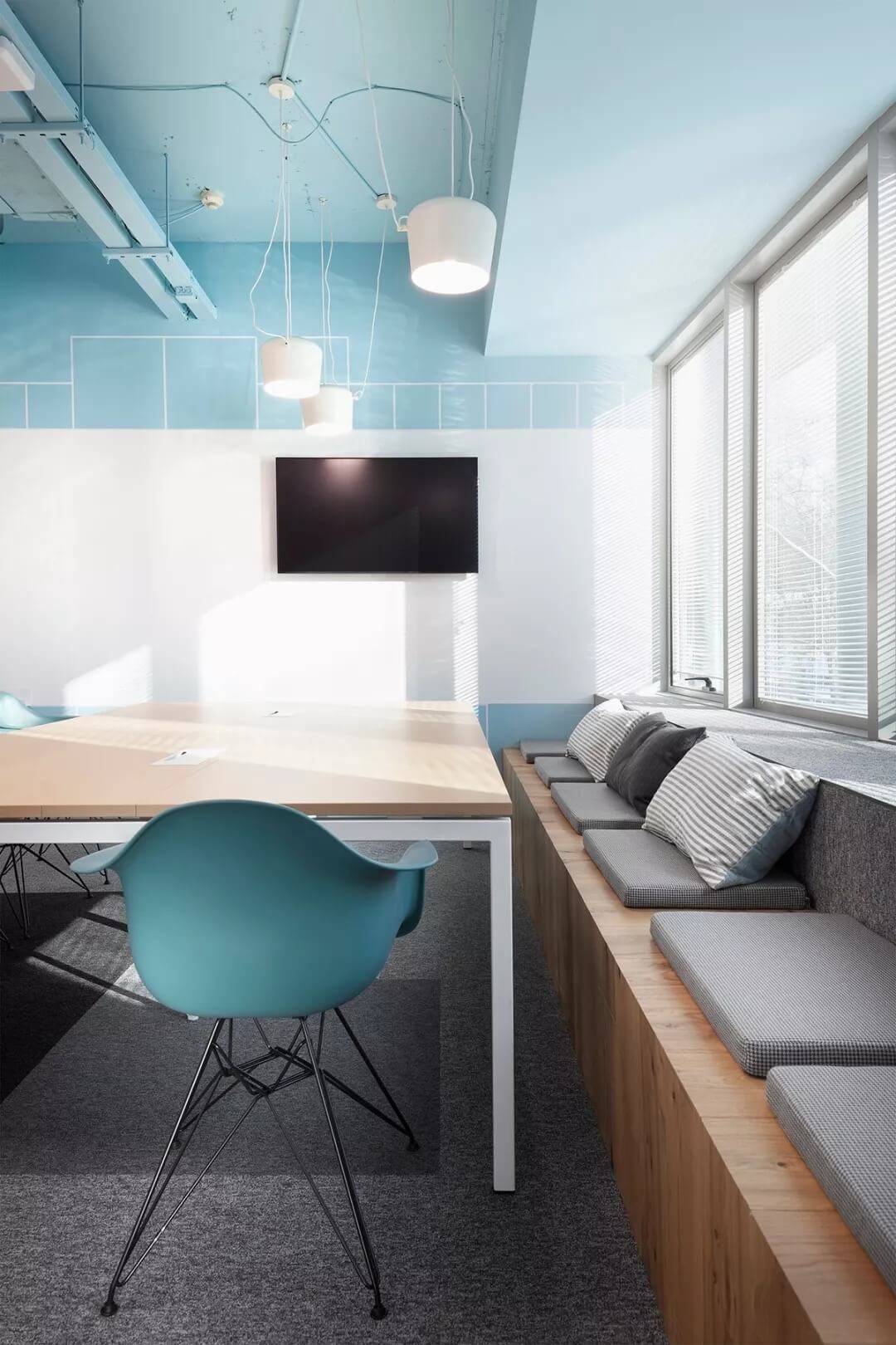 “位于保加利亞三層樓的新金融時報辦公樓,是首都索非亞最負(fù)盛名的地區(qū)。當(dāng)Cache atelier的建筑師受委托設(shè)計FT的新創(chuàng)意空間時,他們想創(chuàng)造一個年輕的靈魂空間,但又不失平靜輕松的舒適感。