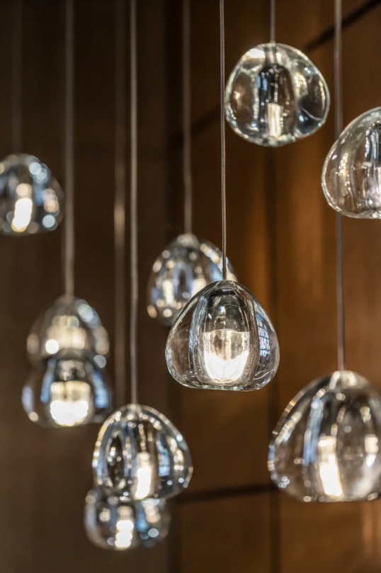 前廳一角,一把隨意的休閑椅構設出安靜而獨立的等候區(qū)。光是一味奇妙而誘惑的催化劑,見證格柵的參差錯落,旖旎于水滴狀通透吊燈,如同午夜巴黎那一杯令人情迷的威士忌,透過光影的變幻,實現(xiàn)精尚定調。