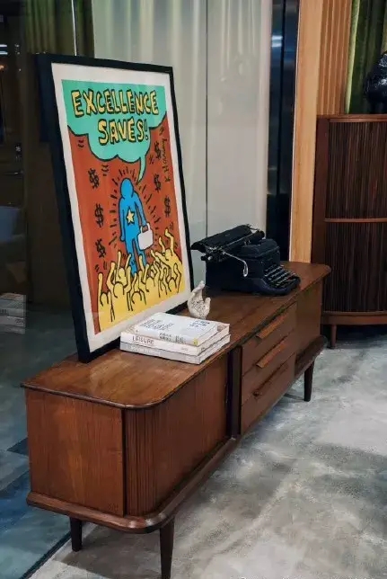 無論是在公司入口處設(shè)置畫廊,承辦各種新興藝術(shù)家的藝術(shù)展,還是員工親自購(gòu)置獲得過歐洲紅點(diǎn)藝術(shù)大獎(jiǎng)的桌椅為公司環(huán)境增添色彩,都無不看出JCGC作為廣告創(chuàng)意營(yíng)銷公司,在細(xì)節(jié)上對(duì)藝術(shù)、對(duì)創(chuàng)意的重視。