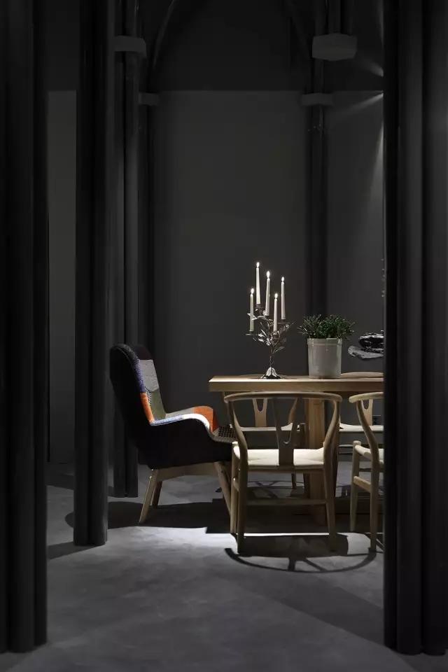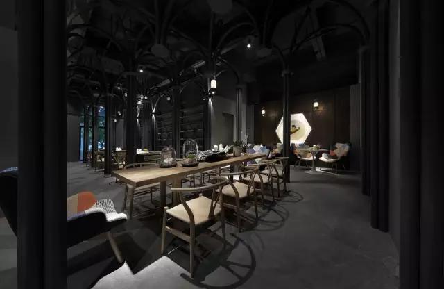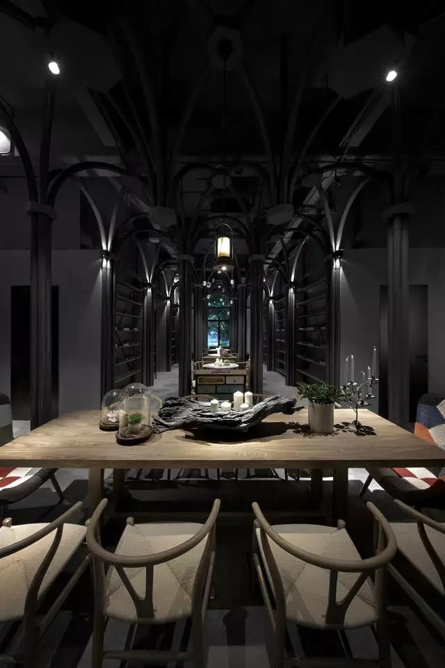 原建筑空間剛剛結(jié)束了破敗的工業(yè)廠房的狀態(tài),業(yè)主接手時還是一片狼藉。項目的運營團(tuán)隊希望打造集餐飲區(qū)、咖啡區(qū)、音樂活動區(qū)及一個塔羅牌活動區(qū)為一體的復(fù)合空間。設(shè)計團(tuán)隊從項目的主題概念中所散發(fā)的神秘色彩入手,希望在偏精神層面的建筑中汲取靈感,翻閱并走訪了大量的哥特式建筑,從挺拔向上的建筑空間結(jié)構(gòu)中體會與神對話的力量感,然后將其移植到這個項目中,以當(dāng)代的構(gòu)成形式,向傳統(tǒng)建筑致敬。