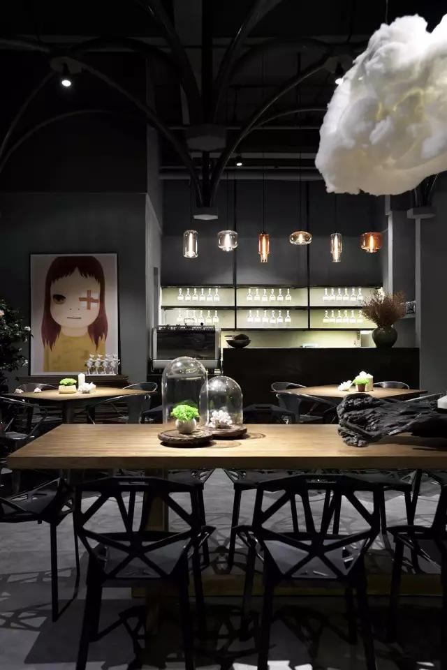 考慮到經(jīng)濟(jì)性、便捷的施工工藝與周期,清水混泥土成為了主要的材質(zhì)。由哥特式建筑引發(fā)的圓管結(jié)構(gòu)設(shè)計,在空間中重組、穿插、演繹了一場哥特式感覺的舞臺劇,其高潮莫過于咖啡區(qū)的一朵白色漂浮的云。設(shè)計最大限度的融入了環(huán)保概念,不僅所有的材料都是可以回收利用的,而且定制安裝的方法既減少了現(xiàn)場的污染,也節(jié)省了施工周期。設(shè)計團(tuán)隊選擇了很多具有趣味性的當(dāng)代藝術(shù)作品來為空間注入時尚而放松的氣質(zhì),輔以層次豐富的燈光效果,將空間打造成了一個優(yōu)雅而又風(fēng)趣的雅皮士的感覺。