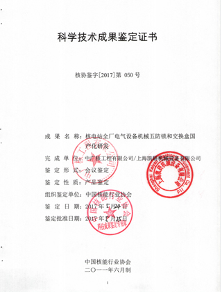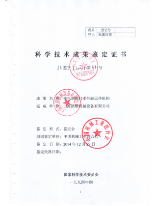 科學(xué)技術(shù)成果鑒定證書(五防鎖)